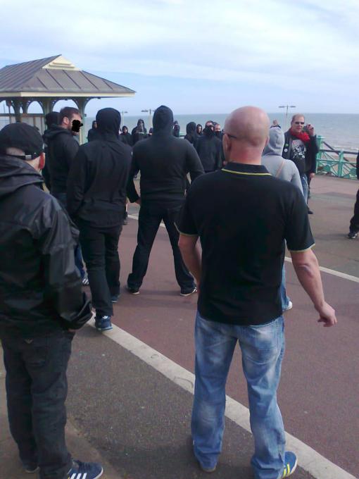 Also, The baldy guy on the right of the picture you may recognise from photo’s in previous articles about this  – he took a kicking on the seafront a bit earlier in the day, maybe he’s the boss of the  ‘Suicide’ squad: