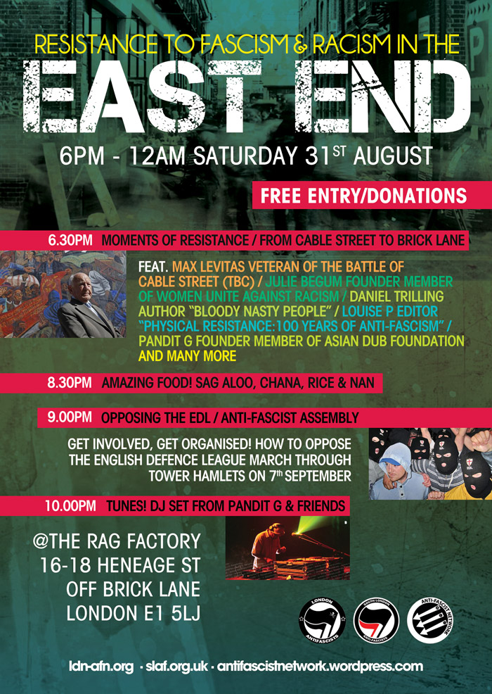 Brilliant event organised by London Anti-Fascists in the run up to the Stop EDL demo in a few weeks.