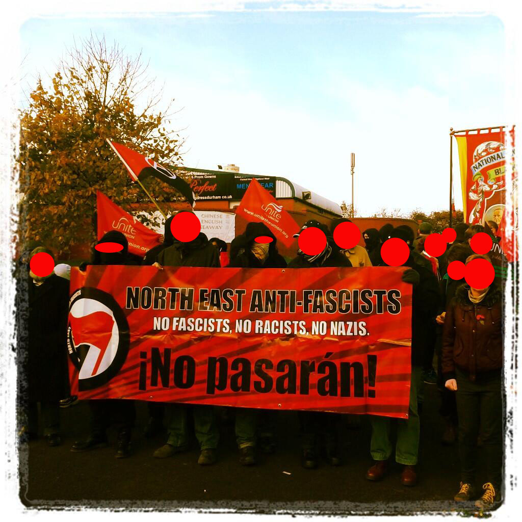 …We are the only consistent North East regional anti-fascist group that attempts to confront fascists wherever they go. The left, what there is of it, is small, split, sectarian, and unable to find the organisational forms suitable for the 21st century. That said, we aim to work with all on an independent manner, however, we will not be treated arrogantly. We do not tolerate those whose only agenda is to control any emerging movement and who only engage in activity to build the party (the left killed the movement by trying to snatch leadership positions and in the process they kill all working class movements, which is why the left is left talking to the same usual suspects).