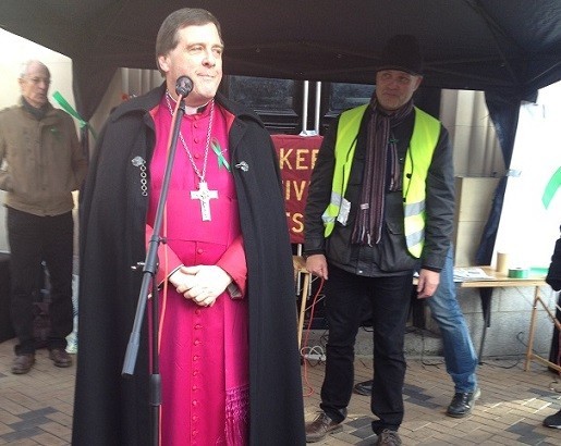 Bishop of Pontefract Tony Robinson, shortly before being attacked on stage by a drunken EDL supporter