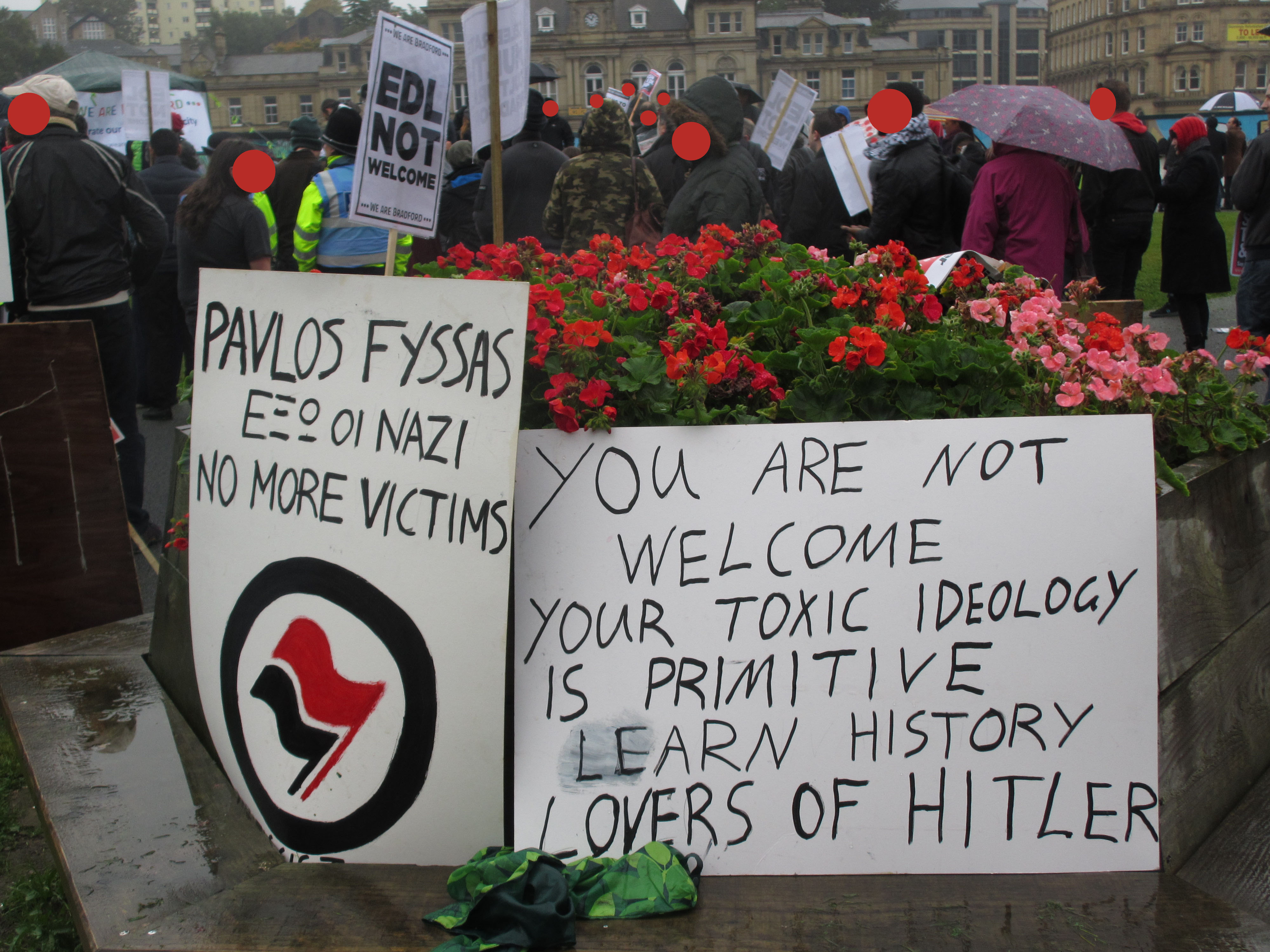 The revolution you sell your papers for? – it doesn’t take money. It takes feet moving in the right direction, and today the feet of the true revolutionary spirits were standing right outside the Wakefield Tavern toe to toe with the wank stains of the EDL whilst you preached and posed and patted yourselves on the back. “Didn’t we do well – what an extraordinary turnout!” Fuck me.