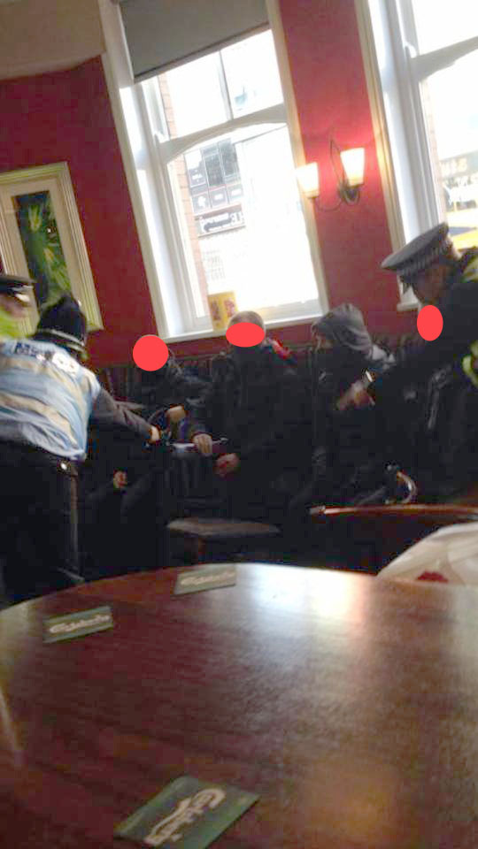 To start with the day went well. A group of Antifascists marched right into the pub the EDL had named as their meeting point. Someone described this as ‘a bit cocky’ but as many of those antifascists were women it’s perhaps not the phrase to use. It was however very effective in showing the EDL Wakefield would not cower and putting them in a tizz early doors. Yay!
