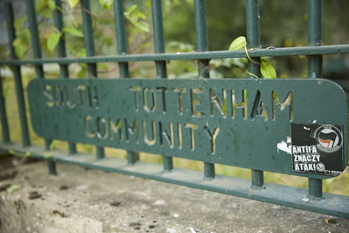 After the end of the UAF rally, a group of around 100 led by the Polish anti-fascist group Dywizjon 161 marched up Tottenham High Road to Markfield Park and removed ZE graffiti and stickers throughout the area, replacing it with anti-fascist stickers and messages.