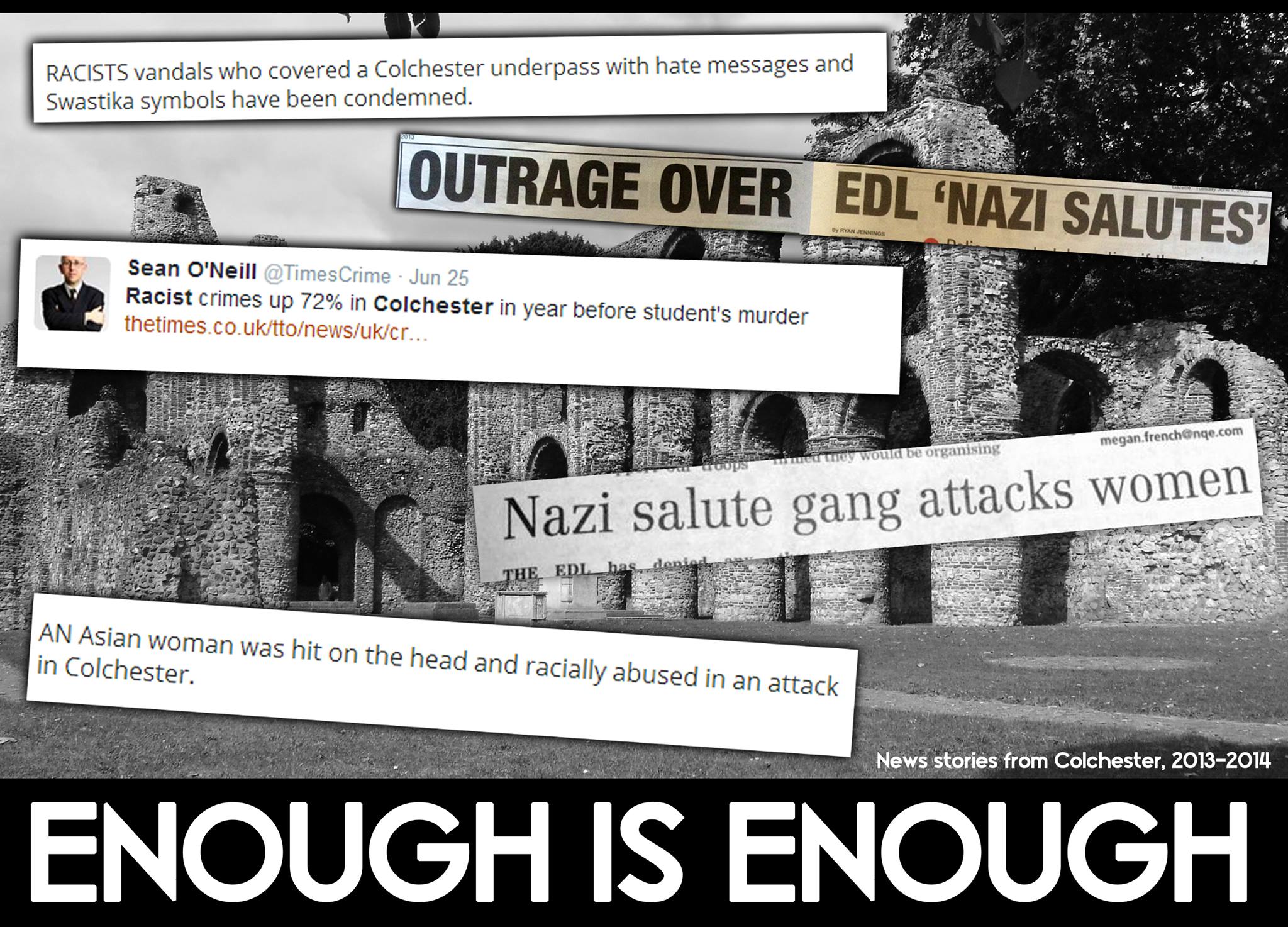After anti-fascists opposed their exploitative demo on the anniversary of Lee Rigby’s death, the fascists have been threatening furious vengeance on the people of Colchester who opposed them.