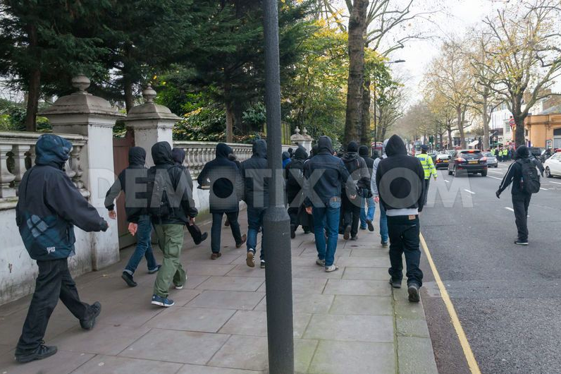 Of course, Antifascists were out in force to oppose them, with a demo called by Antifascist Action for Greece (AAfG) and UAF, alongside London Antifascists, London Black Revs, Dywizjon 161, Brighton Antifascists and other autonomous groups.