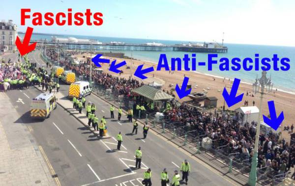Most anti-fascists will have heard of MfE due to their annual shit-shower in Brighton. Every year since 2008, MfE have attempted to drag their racist crap festival through the city, and every year since 2010 they have faced concerted local opposition, resulting in some spectacular successes for the anti-fascists. Due to this opposition, they have now re-located 2015’s event to “a sea-side town in the North”.