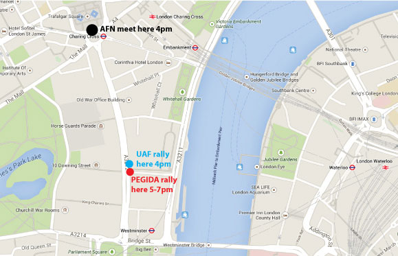 There is also a UAF counter-mobilisation, meeting on Whitehall opposite Downing Street at 4pm.