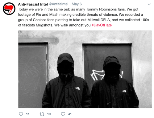 It remains to be seen what exactly will come of this. But none of it will be good. The FLA as a giant street gang in search of a political ideology has found its spiritual guru in Tommy Robinson, a leader in search of a mob. They now have the media presence, they have the ‘celebrity’ racist pundits, they have the boots on the ground and they apparently have the money too.