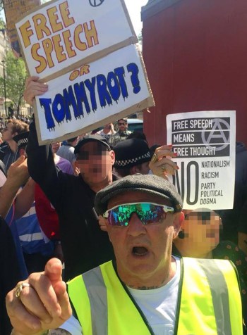 Some other anti-fascists took the opportunity to confront the Tommy-lovers directly. A small group from Class War intervened in the crowd with “Tommyrot” placards and signs.