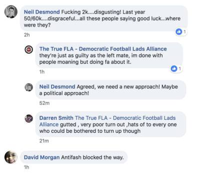 Some London Anti-fascist members joined the Football Lads and Lasses Against Fascism contigent, a new organisation of football casuals who stand against the fascist and racist elements in football clubs. They turned out a large number of lads and lasses and were extremely effective on the day. We’re excited about the new group and look forward to working with them in the future.