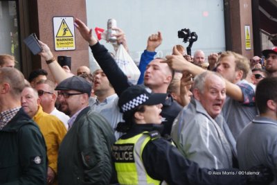 The DFLA had a terrible day. At its start, their march pulled around 2000, their worst showing in London, but those numbers quickly dropped and by the time the march reached Trafalgar Square they had around half that. Worse for them, it was clear they hadn’t been able to attract any new members or appeal to groups outside of their core supporters. Their demonstration was old, white and predominantly male – drawn from the usual groups of racist, anti-left hooligans, Islamophobic political parties and outright neo-Nazis. Despite the DFLA leadership announcing ahead of time that their march would be silent to commemorate the victims of grooming gangs, there was little sign of the campaign on the day. Participants couldn’t stick to the silence for long, catcalling and harassing two women in a convertible on St. James’s Street and breaking out into renditions of God Save the Queen and Rule Britannia when their march was blocked on Pall Mall. In Trafalgar Square, when confronted by the Unity demonstration, their frustration boiled over and several DFLA members performed Nazi salutes and threw cans at anti-fascists. With their folk hero Tommy Robinson turning his back on them it seems likely the group is entering a period of slow decline, barring any significant external event.