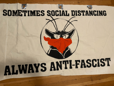 Like everyone else we’ve been in lockdown, spending a lot of time at home with our stockpile of beans in our Antifa™ bunker. But we’ve also stayed active playing our part in local organising initiatives in Brighton and further afield – food banks, food deliveries, mutual aid groups, projects manufacturing PPE etc. And we’ve also made time to chat to some comrades from Oregon about what’s going down in the USA, where they have also had to contend with a social situation that is in some ways more extreme and also with right-wing street movements protesting the lockdown. The following is an interview with Alexander and Thomas, two anarchists who are active in anti-fascist and left organizing in Portland, Oregon.