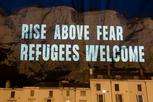 There were a couple of excellent additions to the day. The night before the demo, the charity Freedom From Torture projected messages on Dover’s white cliffs saying “Rise Above Fear. Refugees Welcome” among others. Someone also went out and flyposted Refugees Welcome posters all around central Dover for the fascists to see as they arrived in town.