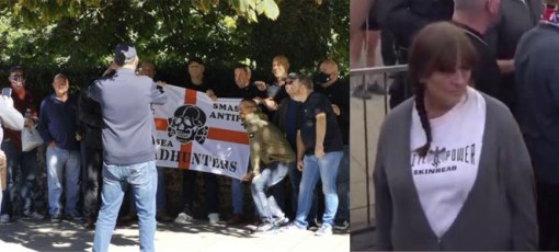 Yes – it’s Chelsea Headhunters with an SS death’s head logo and yes it’s a woman with a white power swastika T-shirt.
