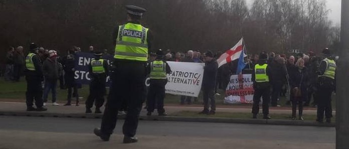 The campaign to target migrant hotels is growing though. Inspired by events in Ireland, Patriotic Alternative, an organisation that has been slowly building in the wings, have clearly made the decision to move to public mobilisation. Not confident to do so on their own, they have piggy-backed on the loose network of serial migrant botherers such as Little Veteran, Steve Laws, Yorkshire Rose etc.
